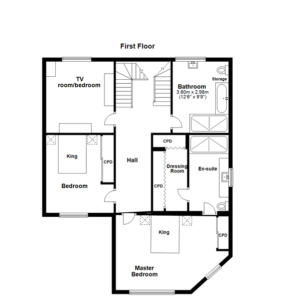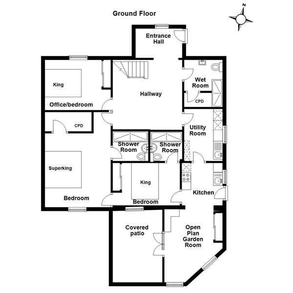 The ground floor had three bedrooms, a bathroom, cloakroom, utility & garden room. To keep the existing plumbing & footprint it made sense to keep the cloakroom but upgrade the bathroom into a utility so that the rear of the property could be a self-contained unit for holiday lets, or visiting family. Two bedrooms with ensuite shower rooms could inter connect & use a separate access into an open plan lounge kitchen diner. The outside covered patio could be a perfect atmospheric setting for outdoor BBQ’s.