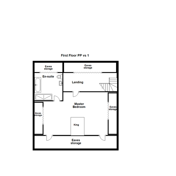Upstairs the master bedroom & bathroom would get a face-lift, but more importantly the wasted eaves space would be customised with lots of eaves storage; essential in a family home with no loft space.